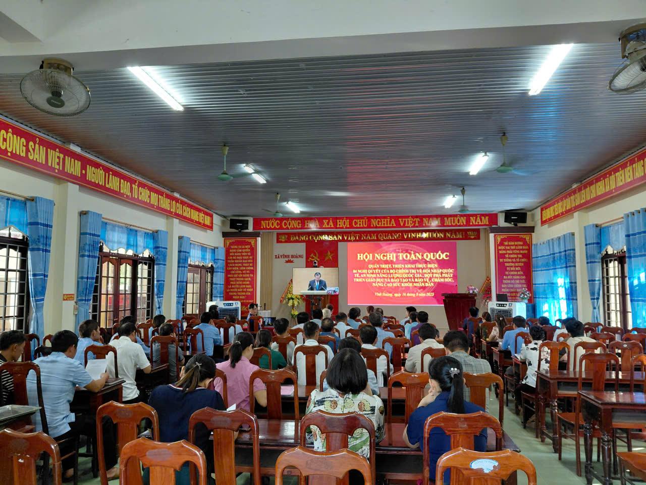 Sáng ngày 16/9/2025, Đảng ủy xã Vĩnh Hoàng đã tổ chức tiếp sóng Hội nghị toàn quốc quán triệt, triển khai thực hiện các nghị quyết quan trọng của Bộ Chính trị tại 2 điểm cầu: Hội trường Đảng ủy và Hội trường UBND xã.