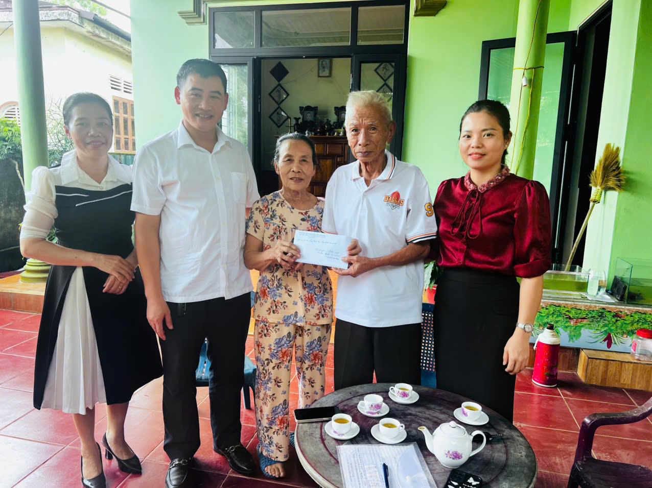 Lãnh đạo xã trao quà của Quỹ Thiện Tâm – Tập đoàn Vingroup tri ân Người có công nhân dịp Quốc khánh 2/9