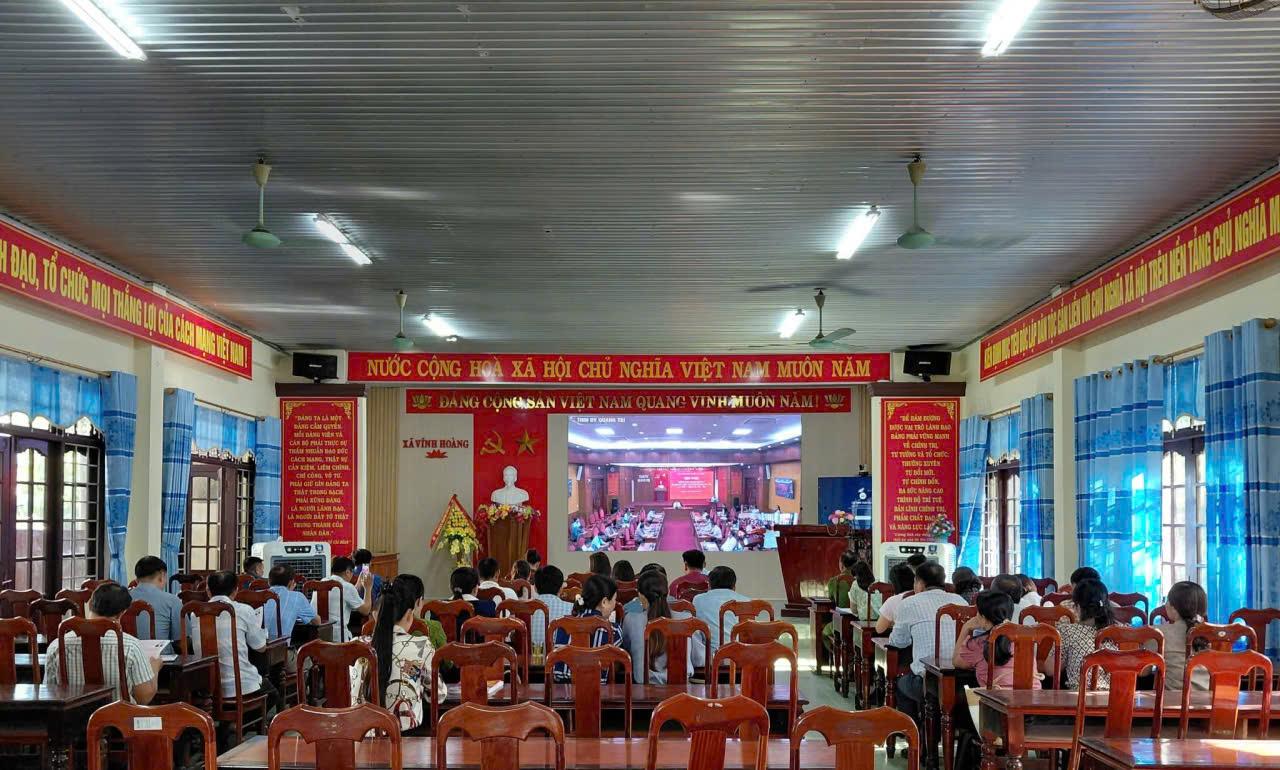 Sáng nay, ngày 07/10/2025, Đảng ủy xã Vĩnh Hoàng tổ chức Hội nghị trực tuyến để nghe thông tin nhanh về kết quả Đại hội đại biểu Đảng bộ tỉnh Quảng Trị lần thứ nhất, nhiệm kỳ 2025 - 2030.