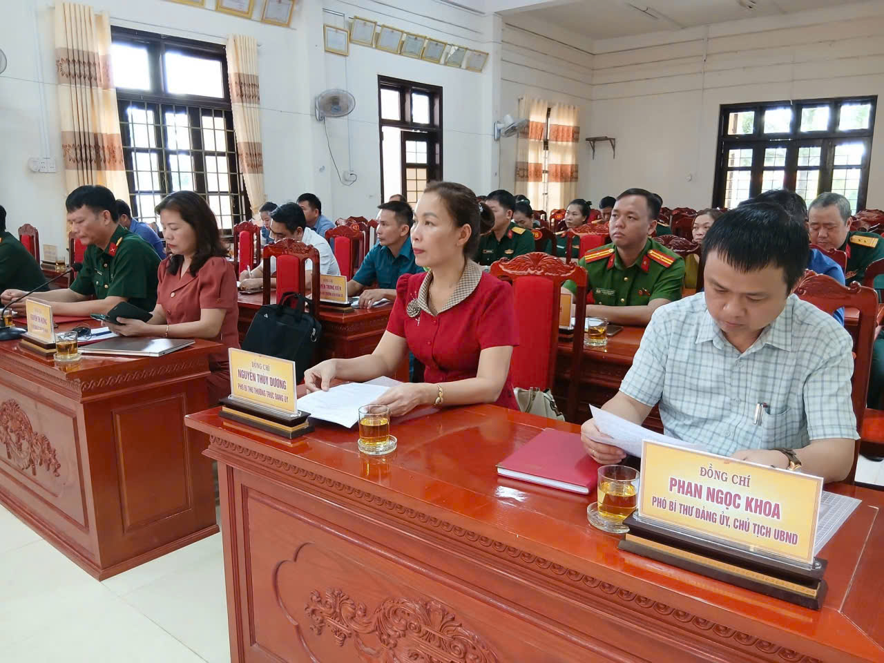 Về phía xã Vĩnh Hoàng có đồng chí Nguyễn Thị Hương - Bí thư Đảng ủy, Chủ tịch HĐND xã; đồng chí Nguyễn Thùy Dương - Phó Bí thư Thường trực Đảng ủy; các đồng chí trong Ban Thường vụ Đảng ủy và cán bộ các phòng, ban của xã.