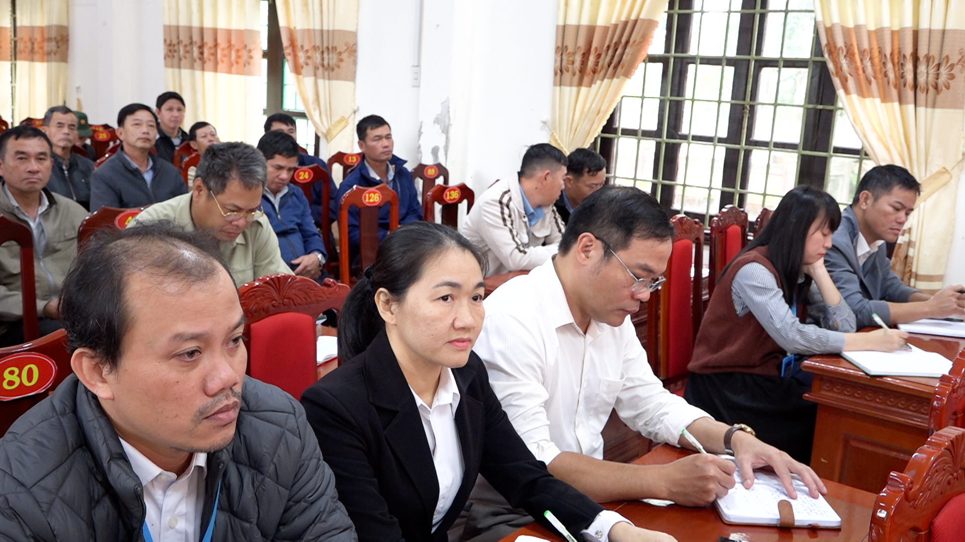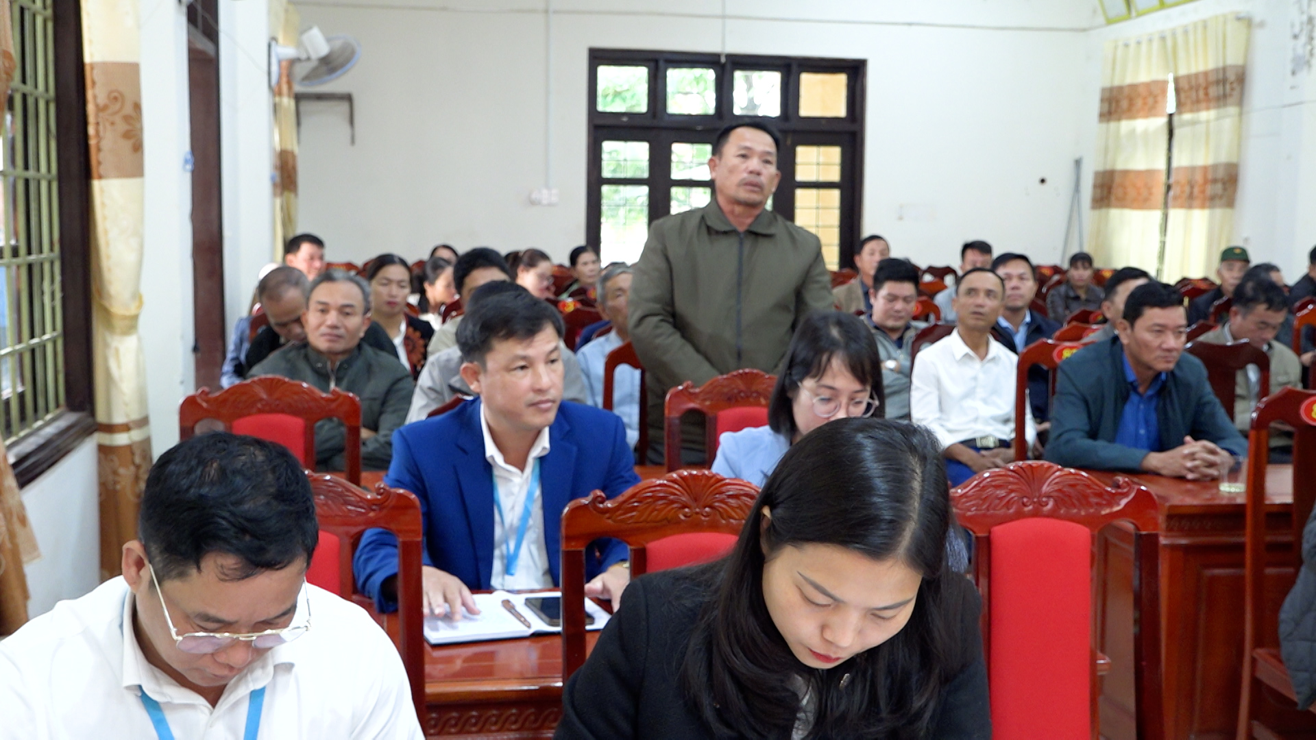 Đồng chí Phan Ngọc Khoa - Phó Bí thư Đảng ủy, Chủ tịch UBND xã, đồng chí Hoàng Đức Quang - UVTV, Phó Chủ tịch HĐND xã, đồng chí Trần Văn Việt - UVTV, Chủ tịch UBMTTQVN xã chủ trì tại hội nghị.