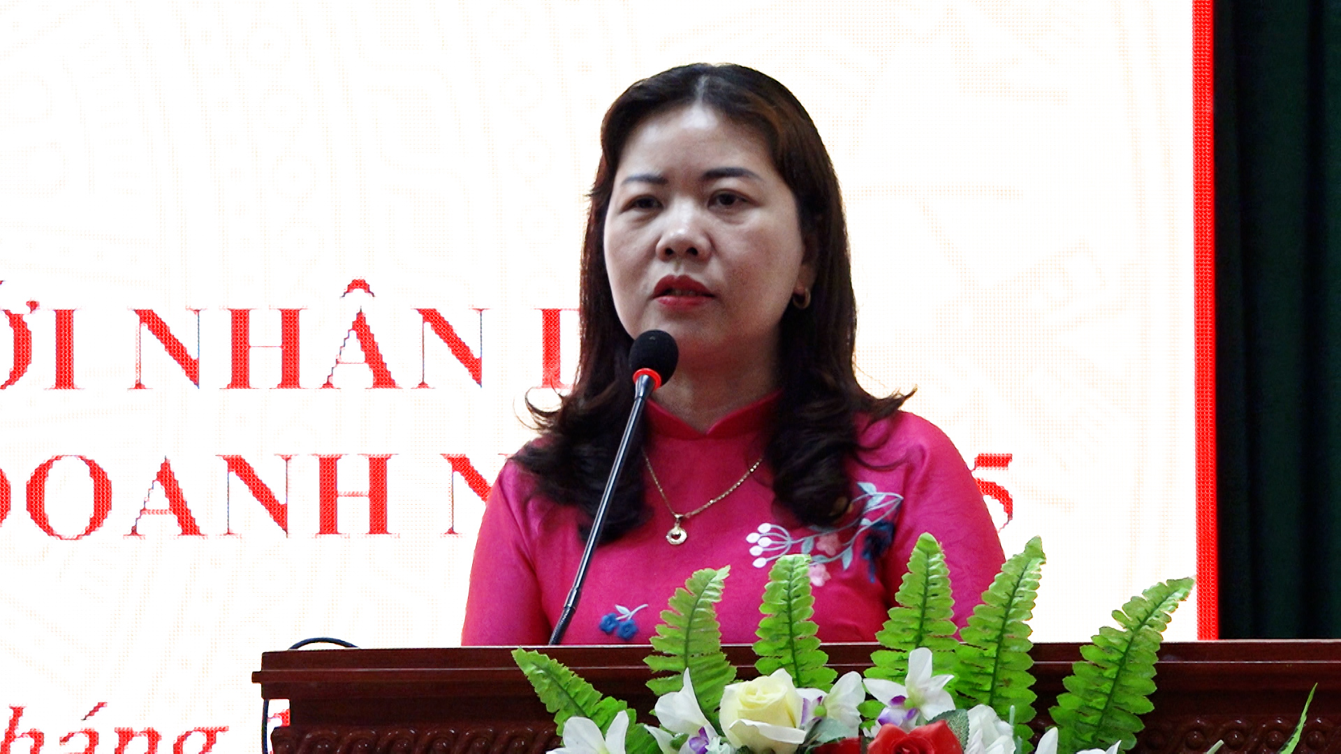 Đồng chí Nguyễn Thị Hương - Bí Thư Đảng ủy, Chủ tịch HĐND xã phát biểu chỉ đạo tại hội nghị