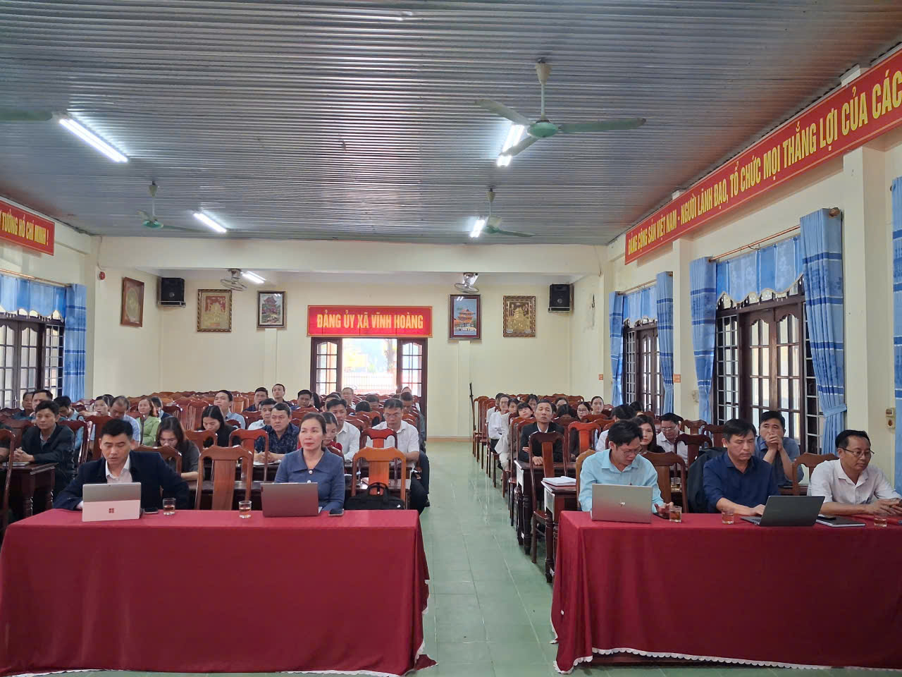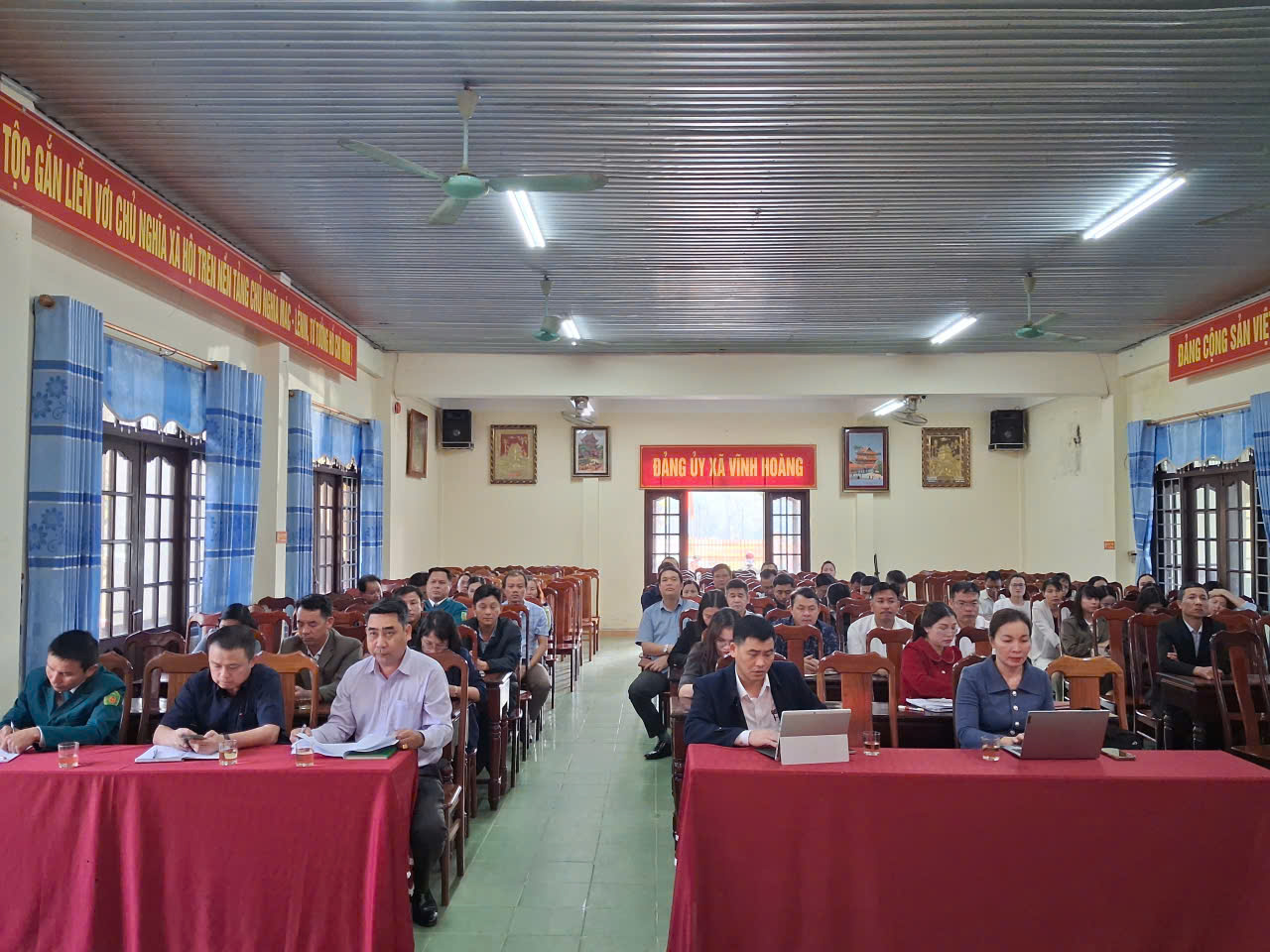 Chiều ngày 29 tháng 12 năm 2025, Đảng ủy - HĐND - UBND - UBMTTQ Việt Nam xã Vĩnh Hoàng tổ chức Hội nghị liên tịch lấy ý kiến cử tri nơi công tác đối với nhân sự dự kiến giới thiệu ứng cử đại biểu HĐND xã nhiệm kỳ 2026 - 2030. Hội nghị diễn ra nhằm bảo đảm thực hiện đầy đủ, nghiêm túc quy trình giới thiệu nhân sự theo quy định, làm cơ sở để lựa chọn những đại biểu tiêu biểu, có năng lực, phẩm chất, uy tín, đại diện cho ý chí và nguyện vọng của Nhân dân địa phương.