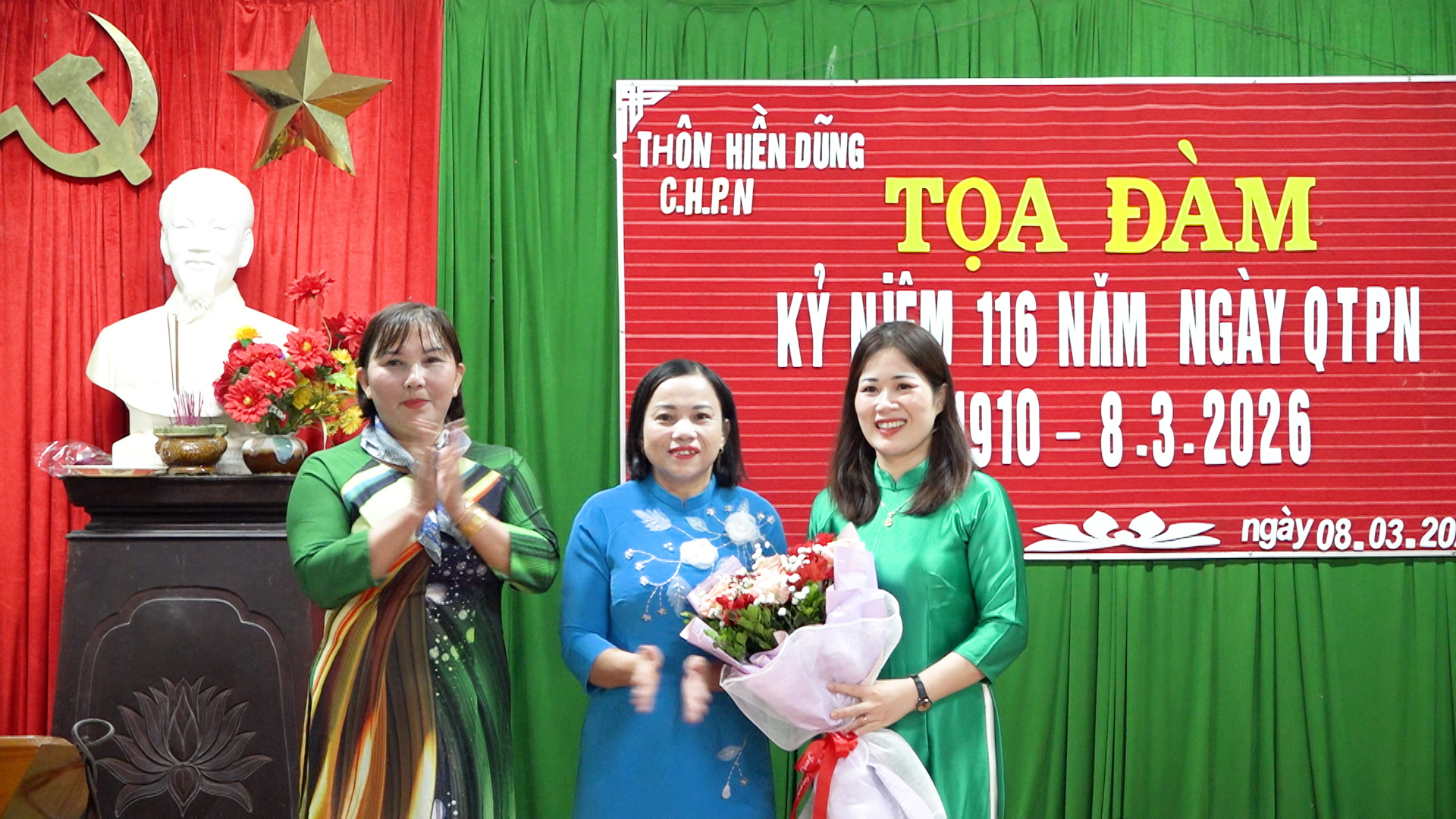 Tại buổi lễ, Chi hội Phụ nữ thôn Hiền Dũng cùng ôn lại lịch sử Ngày Quốc tế phụ nữ 8/3 và 1986 năm cuộc khởi nghĩa Hai Bà Trưng. Từ đó khơi dậy trong cán bộ, hội viên phụ nữ niềm tự hào, quyết tâm đoàn kết, phát huy truyền thống tốt đẹp của các thế hệ phụ nữ để tiếp tục phấn đấu, góp sức vào nhiệm vụ phát triển kinh tế - xã hội của địa phương. Đặc biệt, dịp này, Chi hội Phụ nữ thôn Hiền Dũng tổ chức trình diễn áo dài, đồng diễn dân vũ, tạo không khí sôi nổi, vui tươi, lan tỏa thông điệp tôn vinh, xây dựng hình ảnh người phụ nữ “Tự tin - năng động - khỏe mạnh” trong toàn thể cán bộ, hội viên phụ nữ.