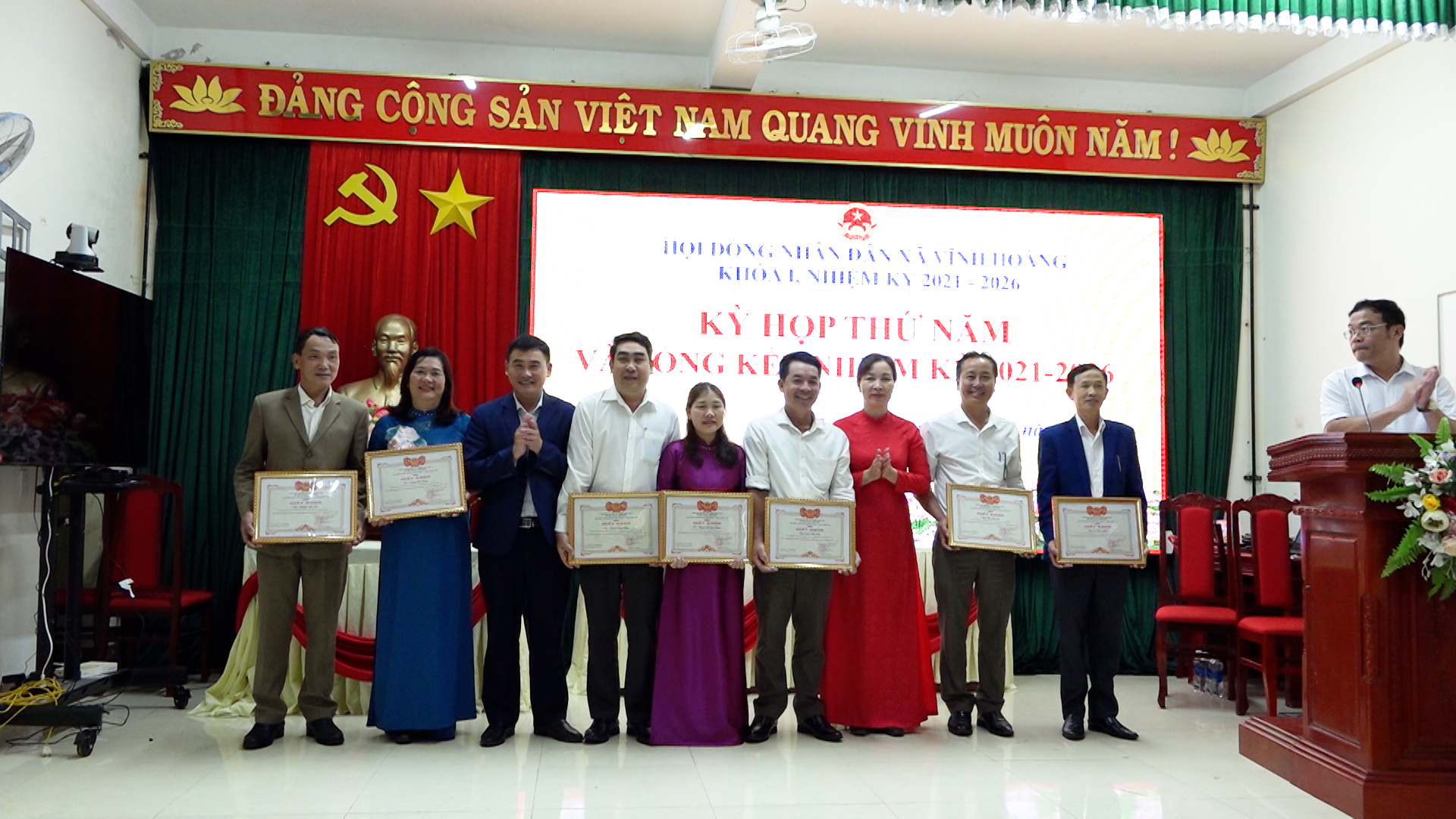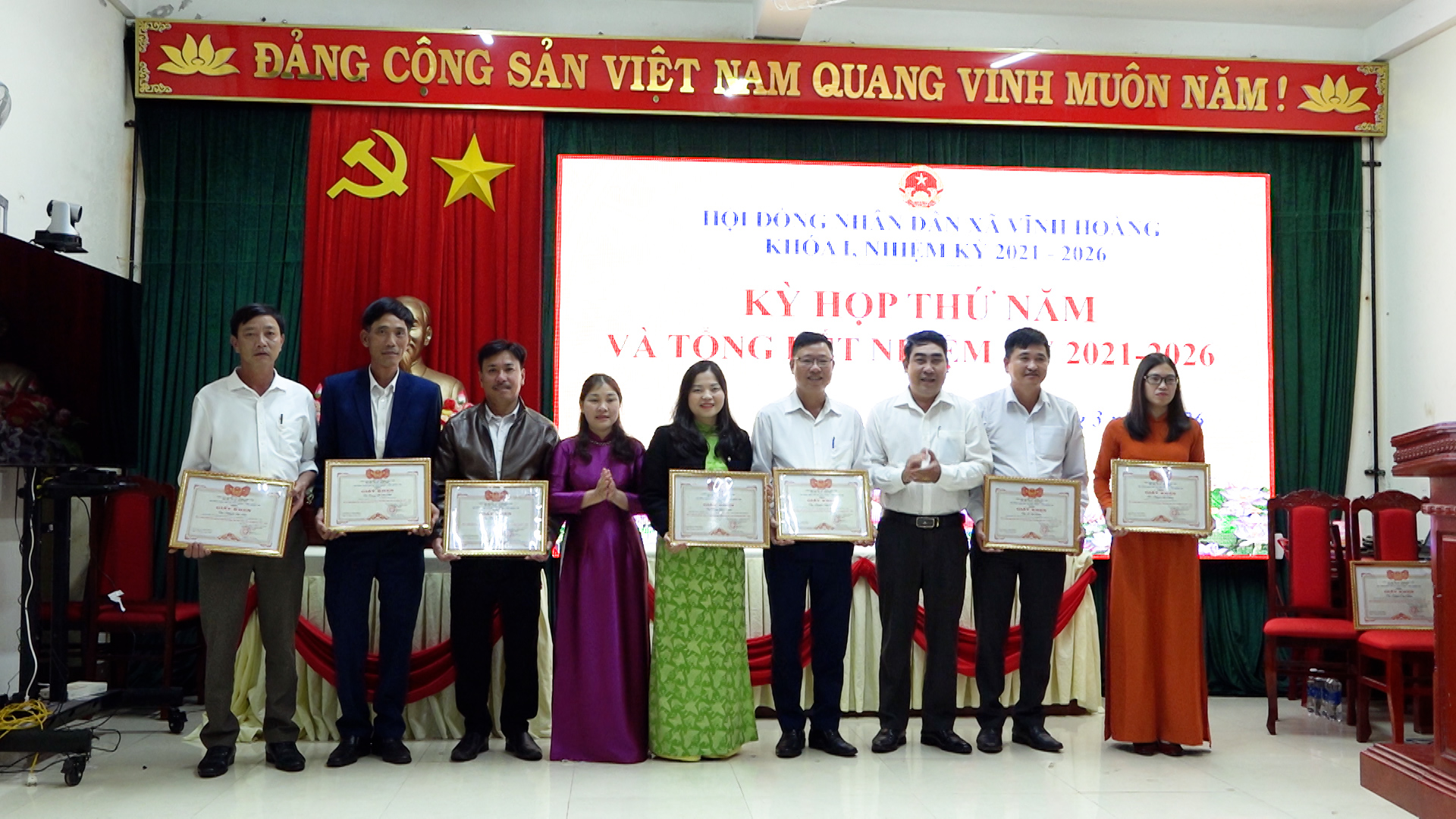 Tại hội nghị, HĐND xã Vĩnh Hoàng đã biểu dương, khen thưởng cho nhiều tập thể và cá nhân vì đã có thành tích xuất sắc trong nhiệm kỳ 2021-2026.