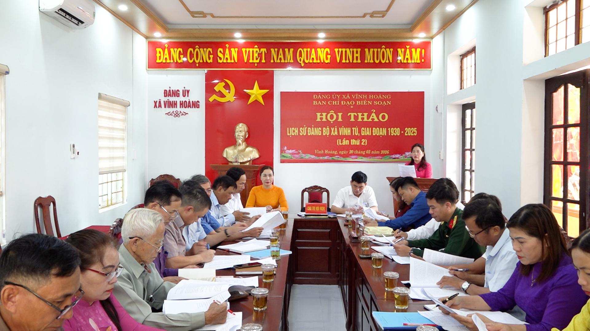 Hội thảo lần thứ hai cuốn “Lịch sử Đảng bộ xã Vĩnh Tú, giai đoạn 1930 - 2025 là bước quan trọng trong quá trình hoàn thiện cuốn sách, góp phần lưu giữ, giáo dục truyền thống cách mạng, khơi dậy niềm tự hào và trách nhiệm của cán bộ, đảng viên và nhân dân Vĩnh Tú, xã Vĩnh Hoàng trong sự nghiệp xây dựng và phát triển quê hương.