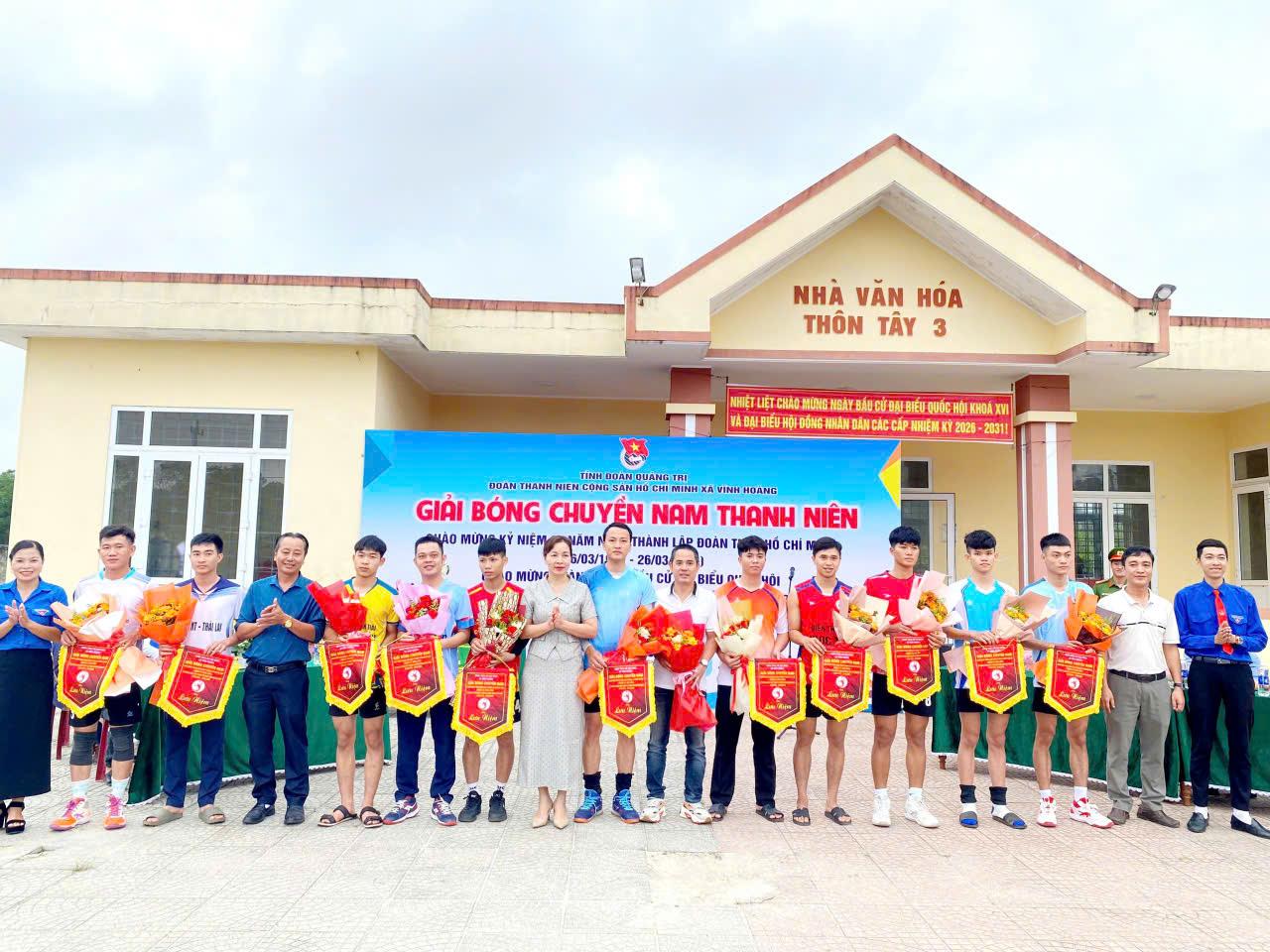 Ngày 21/3, Đoàn TNCS Hồ Chí Minh xã Vĩnh Hoàng tổ chức khai mạc Giải bóng chuyền Nam thanh niên nhân kỷ niệm 95 năm Ngày thành lập Đoàn TNCS Hồ Chí Minh 26/03 (1931 - 2026), chào mừng thành công cuộc bầu cử đại biểu Quốc hội và HĐND các cấp nhiệm kỳ 2026 - 2031. Tham dự lễ khai mạc có các đồng chí: Nguyễn Thùy Dương - Phó Bí thư Thường trực Đảng ủy; Trần Văn Việt - Chủ tịch UBMTTQVN xã Vĩnh Hoàng.